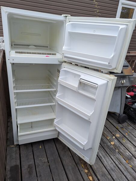 23" wide, 30" deep and 60" high, fully functioning fridge, with top freezer