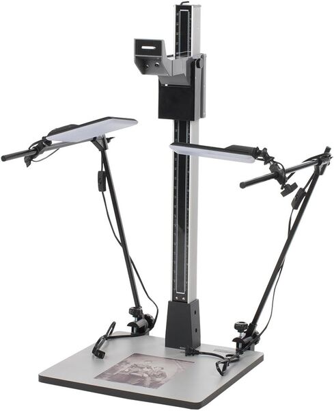 The new Smith-Victor 36" Pro-Duty Copy Stand Kit provides a complete professional system for creating precise reproductions of photographs, artwork and other objects. The sturdy baseboard features a non-reflective 18% gray matte finish that measures 17 5/8”x17 5/8” which allows for originals of up to 11x14. The column is constructed of heavy duty extruded aluminum and is designed to be low-vibration which is critical for the sharpest images possible. The column also features a height scale printed on the anodized aluminum.