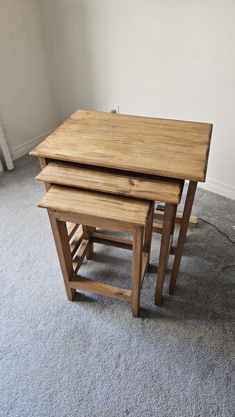 A Set of 3 Stackable Wooden Tables