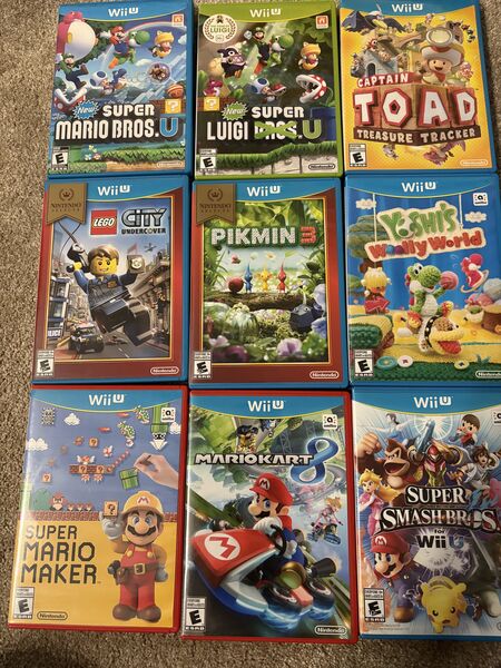 Selling a Wii U system and console. Comes with 9 popular Mario/Nintendo brand and Lego games, all tested and in working order: - Super Mario Bros U - New Supers Luigi U - Captain Toad Treasure Tracker - Lego City - Pikmin 3 - Yoshi Woolly World - Super Mario Maker - Mariokart 8 - Super Smash Bros Wii U