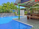Amazing pool, 2 bedroom home with main eating area in outside rancho by the pool. 5 minute drive to town and beaches. 2 bathrooms, 3 showers (one by pool to wash off beach sand! Concertina kitchen window with breakfast (or all day) bar!