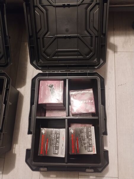 Have two Plano ammo storage boxes and 18 boxes of shotgun shells. All are 2 and 3/4. Vary between 1145 and 1200fps. I have 7 boxes of the Federal brand., 4 boxes of Challenger and 5 boxes of Winchester. Paid just over 50 for the cases and eack box of shells was roughly 15.99.