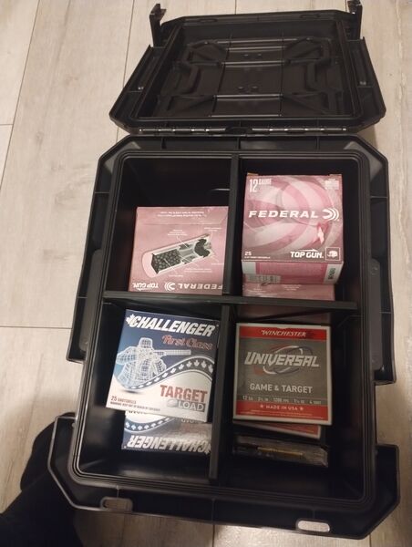 Six boxes of Federal, three boxes of Challenger and two boxes of Winchester shells. Also selling the Plano storage box with two spaces for locks. 10.00 for each case of ammo. Paid fifty for the storage case. 30.00 for the storage case. Will consider offer for all of it to go to one buyer. Text 867-445-5546. Must have PAL