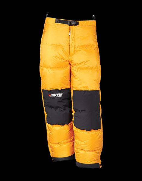 Designed for use with Baffin Apparel layering system Insulated cold-weather protection Waterproof, full two-way zipper 800 Fill Down Reinforced knees and seat areas -I used these pants only once on a snowmobile trip below -30. They are by far the most comfortable , lightweight and warm polar rated pants I have used. Like New Condition Asking $1000 for full set.