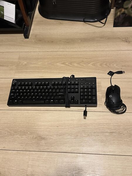 Comes with Logitech mouse and keyboard, power cable, HDMI cable and a fresh install of Windows