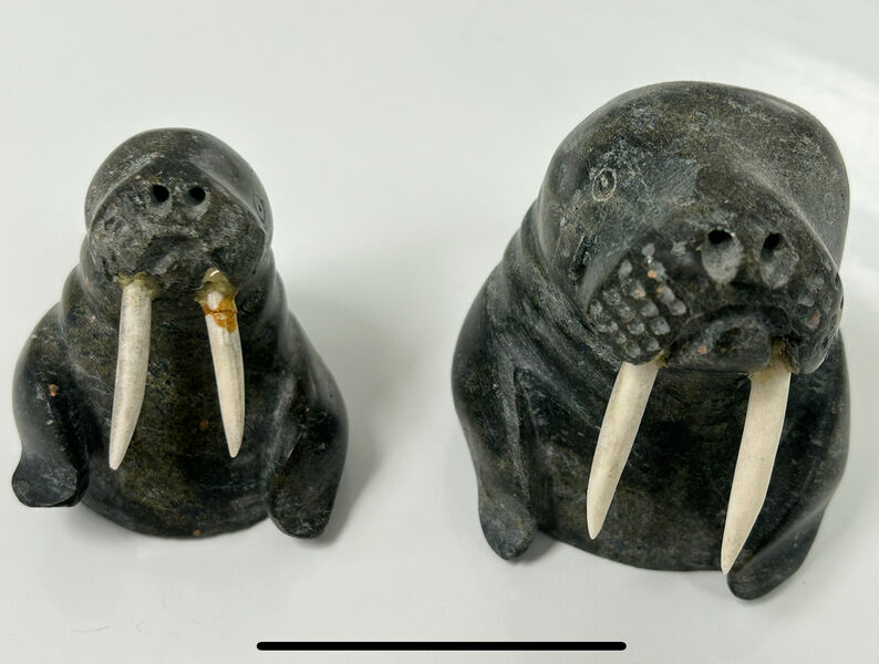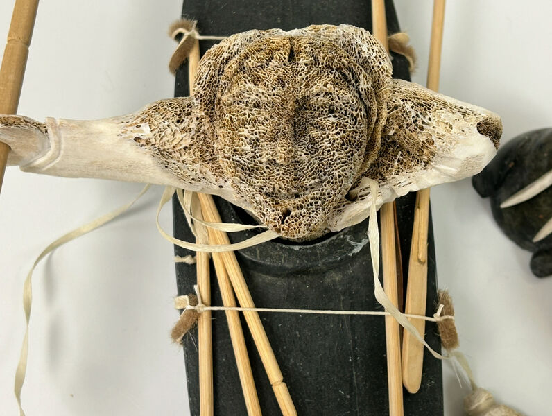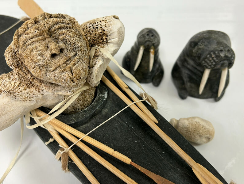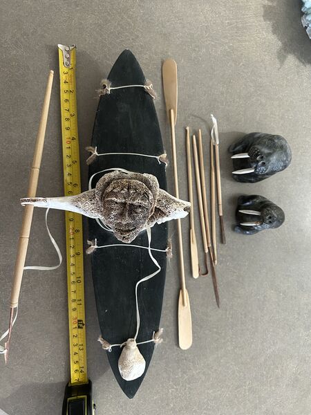 Walrus Hunter Carving 2006 - approx 15 inches long. Artist: RA Kussy. Everything in photo included. Cash only please text 1-867-688-3507