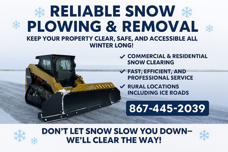 - Snow plowing, heavy pack snow removal and haul away available for Yellowknife and Rural area’s