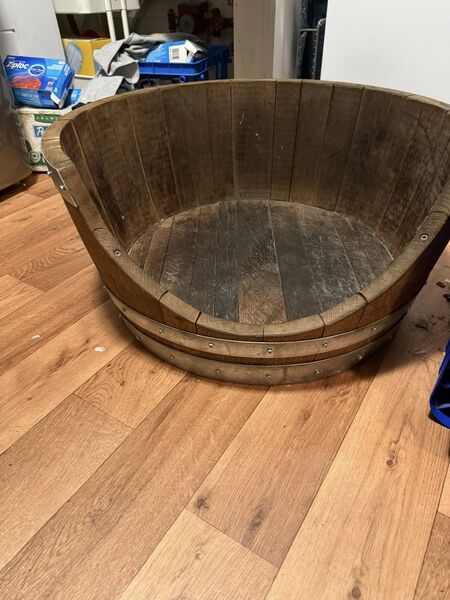 Dog bed made out of barrel, good conditon. Decluttering, asking $100, text 444-0646