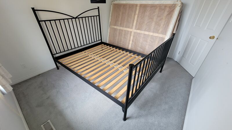 Queen size memory foam mattress and box spring in an IKEA bedframe