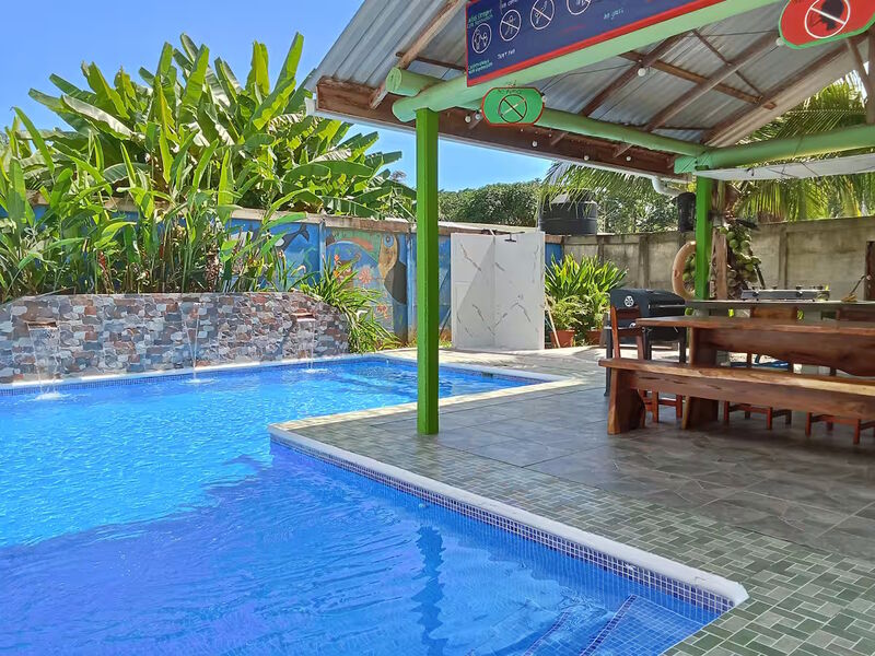 Amazing pool, 2 bedroom home with main eating area in outside rancho by the pool. 5 minute drive to town and beaches. 2 bathrooms, 3 showers (one by pool to wash off beach sand! Concertina kitchen window with breakfast (or all day) bar!