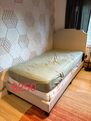 Two sets of twin bed. Bed frame, mattress, box spring, mattress protector and fitted sheets.