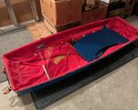 Fibreglass Pulk with nylon wrapper and tie downs to secure a load or can be converted into a child carrier for two small people
