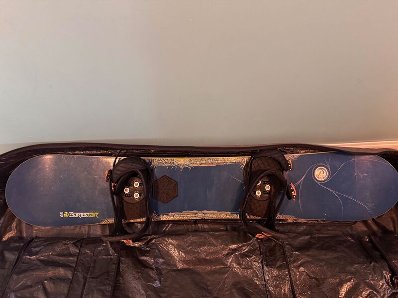 The OG freestyle board, with boots, binding and roller bag. 153 cm. Boots are 10.5, everything is solid + ready to shred.