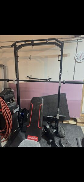 Selling my complete gym set up, as it has been extremely well looked after and not used more than 10 times. A squat rack with Olympic barbell and assorted weights, incline/decline bench, two 50lb adjustable dumbbells on a custom built stand for easy access. Pulley system and a light weight rowing machine. Everything you need for starting your home gym.