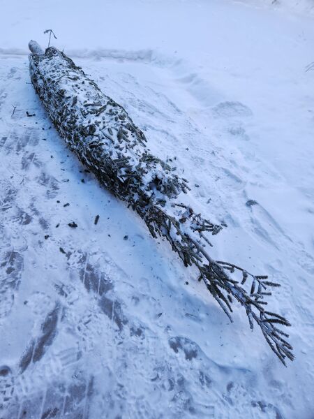 Twelve (12) foot spruce Christmas tree bought from the Scouts tree lot. Unable to use. Paid $225.