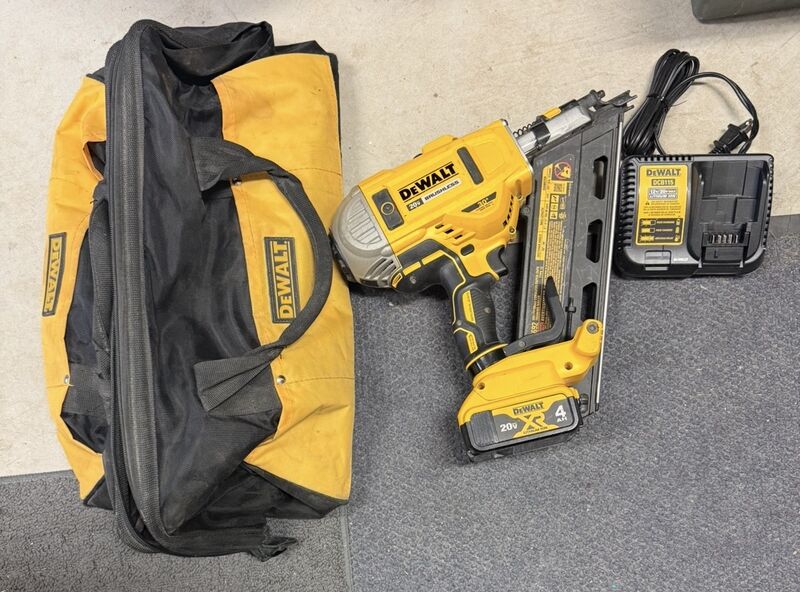 1 20v dewalt framing nailer includes 1- 4ah battery,1 battery charger,1 tool bag