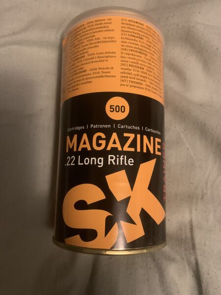 7 cans of 500 rounds sk magazine 4 cans sealed, three have been opened but are full. $75/can or 500 for all seven cans.