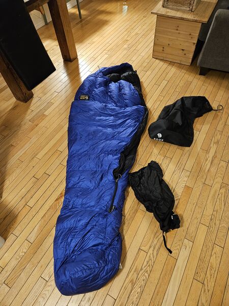 Long size, all down, mummy type bag. Warm while still being light and packable for skiing or backpacking. Purchased a few years ago from Overlander for ~$400. Gently used a handful of times, but it is too small in the shoulders for me. Comes with compression sack for field use and a large mesh storage bag.