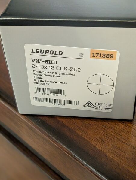 Leupold VX-5HD 2-10x42mm rifle scope with the CDS turret system and illuminated Firedot Duplex reticle.
