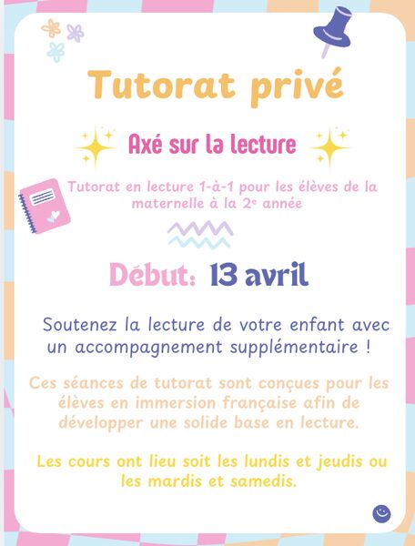 Tutorat en lecture pour élèves en immersion française (Maternelle à la 2ᵉ année)