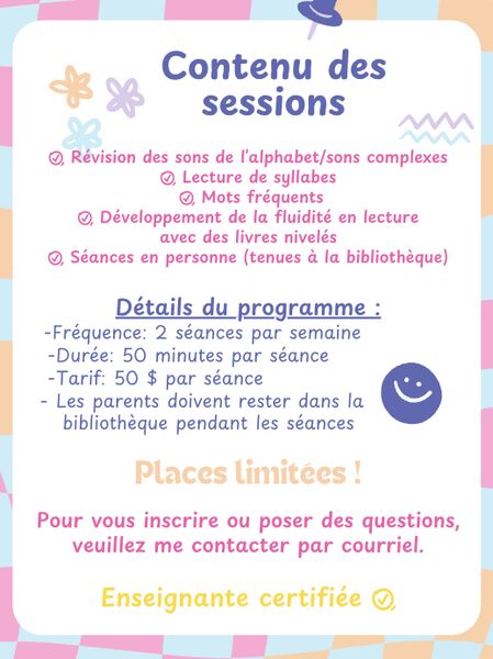 French Immersion Reading Tutoring – K to Grade 2
