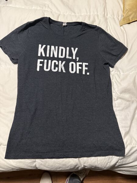 T-shirt, size large but fits more like medium, new, comes from smoke free home. Asking $10