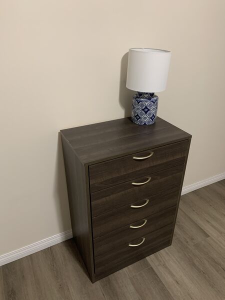 Wooden Dresser for sale. Used for 16 months, need it gone by April 23 as I am leaving Yellowknife. $75 for the dresser OBO, will also throw in the lamp in the images if desired. No delivery, must pick up, located near downtown Yellowknife.