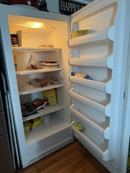 Stand up freezer in good condition. 5yrs old. Measurement 30 1/4 x 34 1/8 x 72 5/6. Comes from smoke free home. Text 444-0646. Its all empty and ready to go, Downsizing.