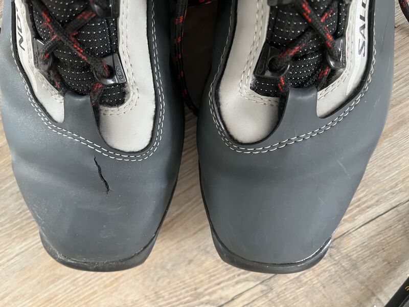 To give away for free- cross country ski package. Wax skis with boots that are 10.5 men’s and show some use. One has a crack near toe. Some wax and cork thing included